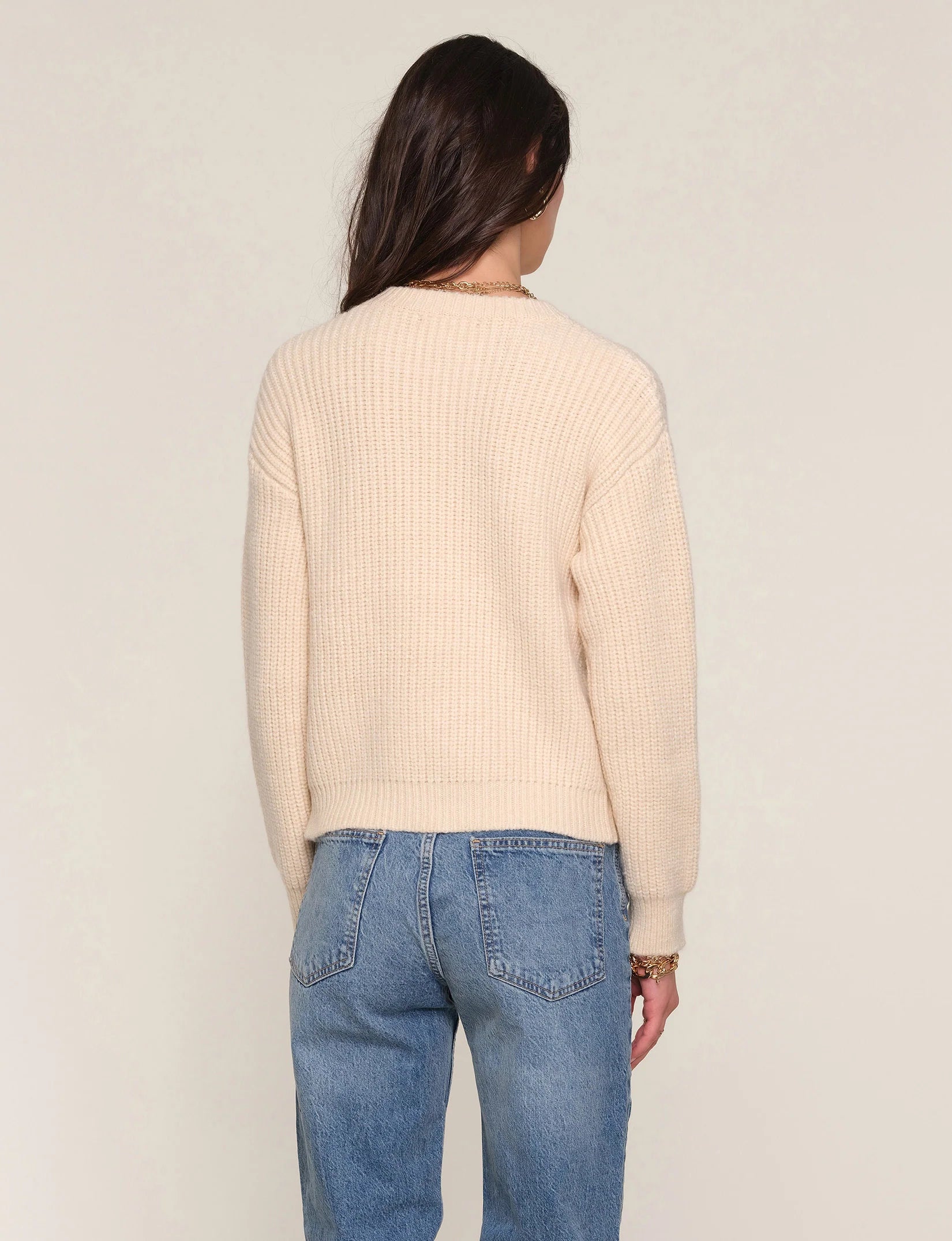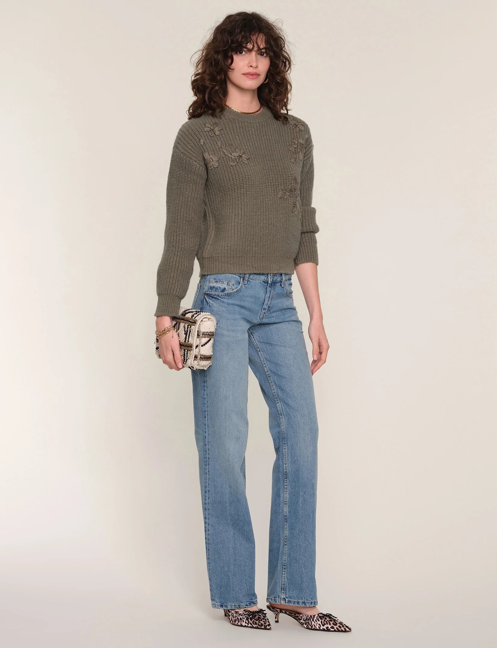 Le pull Ellie est un modèle décontracté à col rond. Confectionné en maille côtelée douce, il est orné de broderies florales sur le devant.