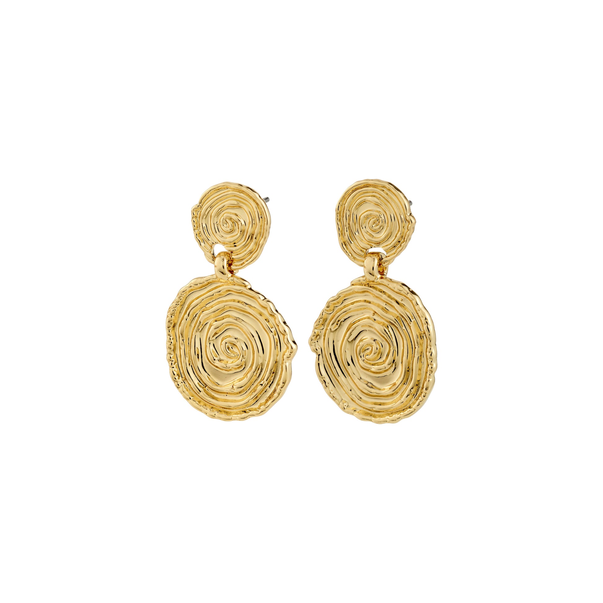 Savourez l'instant présent. Ces boucles d'oreilles AIR plaquées de Pilgrim insufflent une touche de magie nordique à votre quotidien. Leurs délicats pendentifs en forme de pièces de monnaie arborent un aspect artisanal empreint d'une énergie ancestrale, tandis que leur design en spirale leur confère style et authenticité. Portez-les avec un gilet utilitaire et un jean ample pour un look printanier et audacieux. Confectionnées à partir de 99 % de matériaux recyclés, elles incarnent une mode responsable et intemporelle.