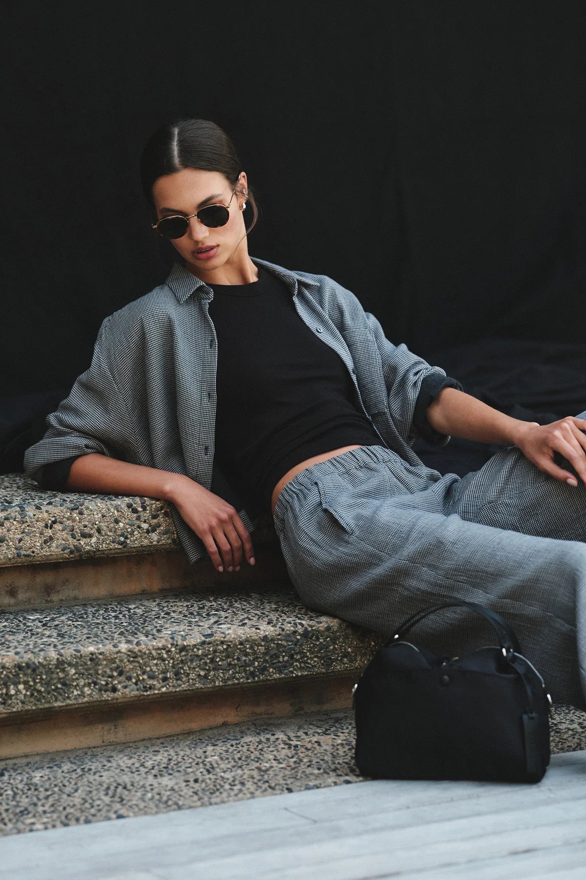This stylish overshirt features a classic houndstooth pattern, offering a timeless yet contemporary aesthetic. The collared design, button-front closure, and rolled sleeves with contrasting cuffs contribute to a relaxed and versatile look. Complete with a single chest pocket, it's perfect for layering over a simple tee and pairs effortlessly with denim or tailored trousers for a chic and effortless everyday ensemble.