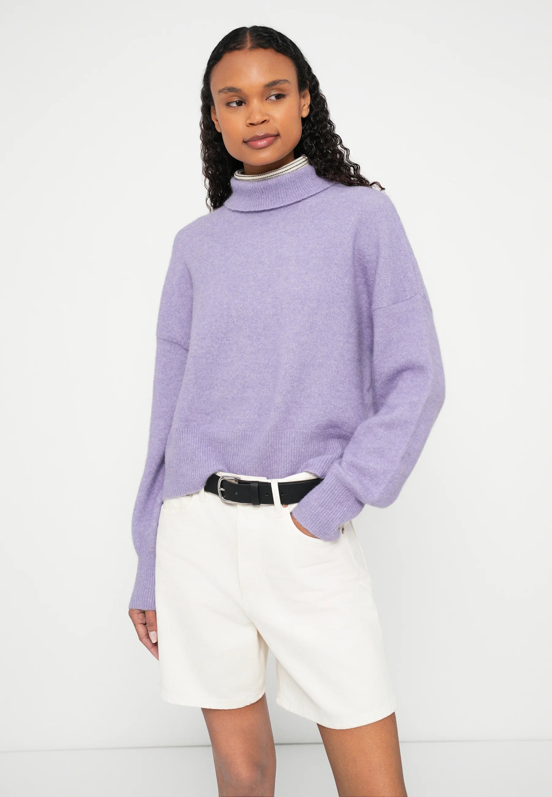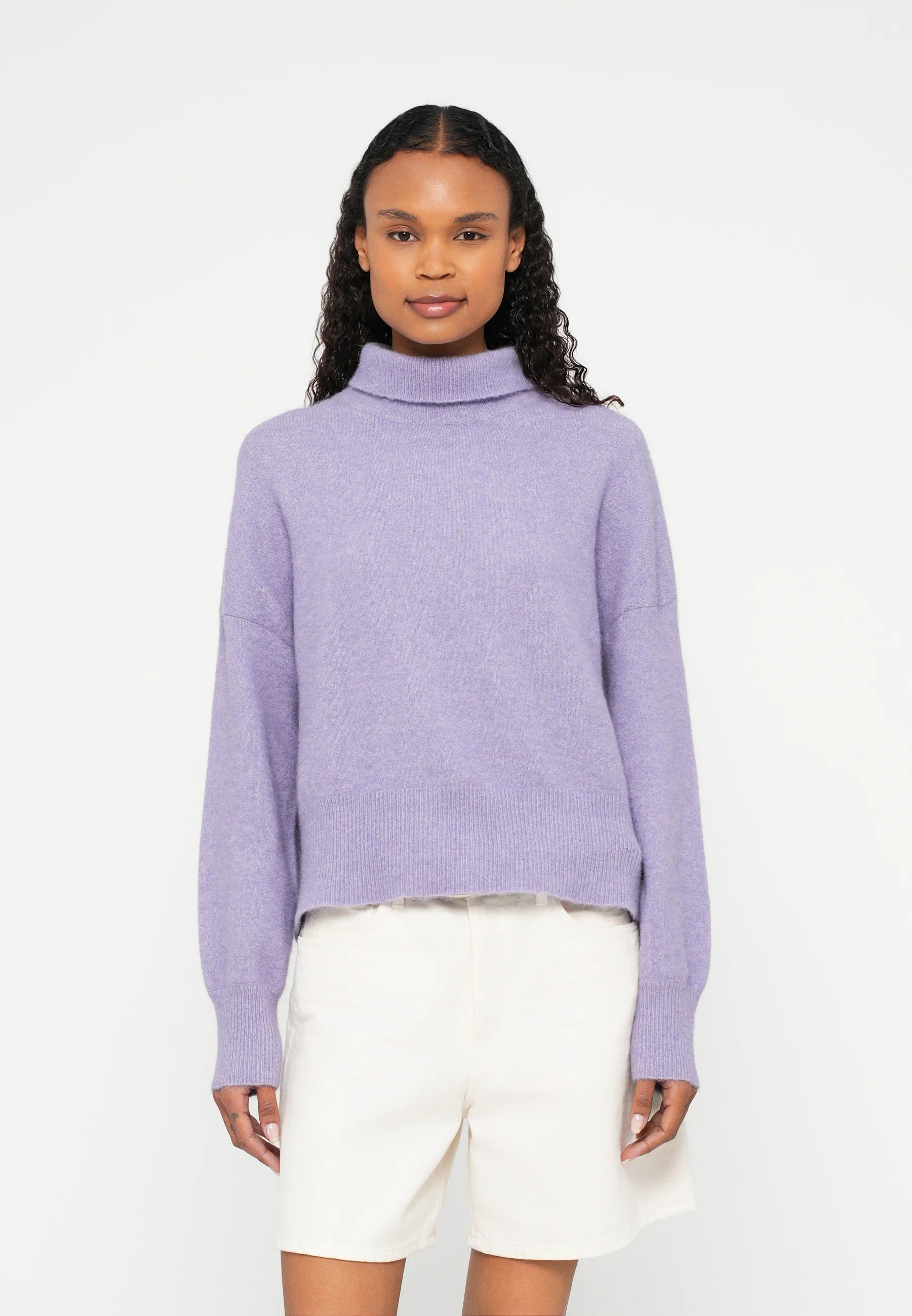 Turtleneck sweater with a regular fit and dropped shoulders. Rib-knitted collar, cuffs, and hem. Fully fashioned seams. Main material made from a blend with wool, alpaca wool, and recycled polyester.Content: 32% Wool | 32% Alpaca | 30% Recycled Polyester | 6% Elastane