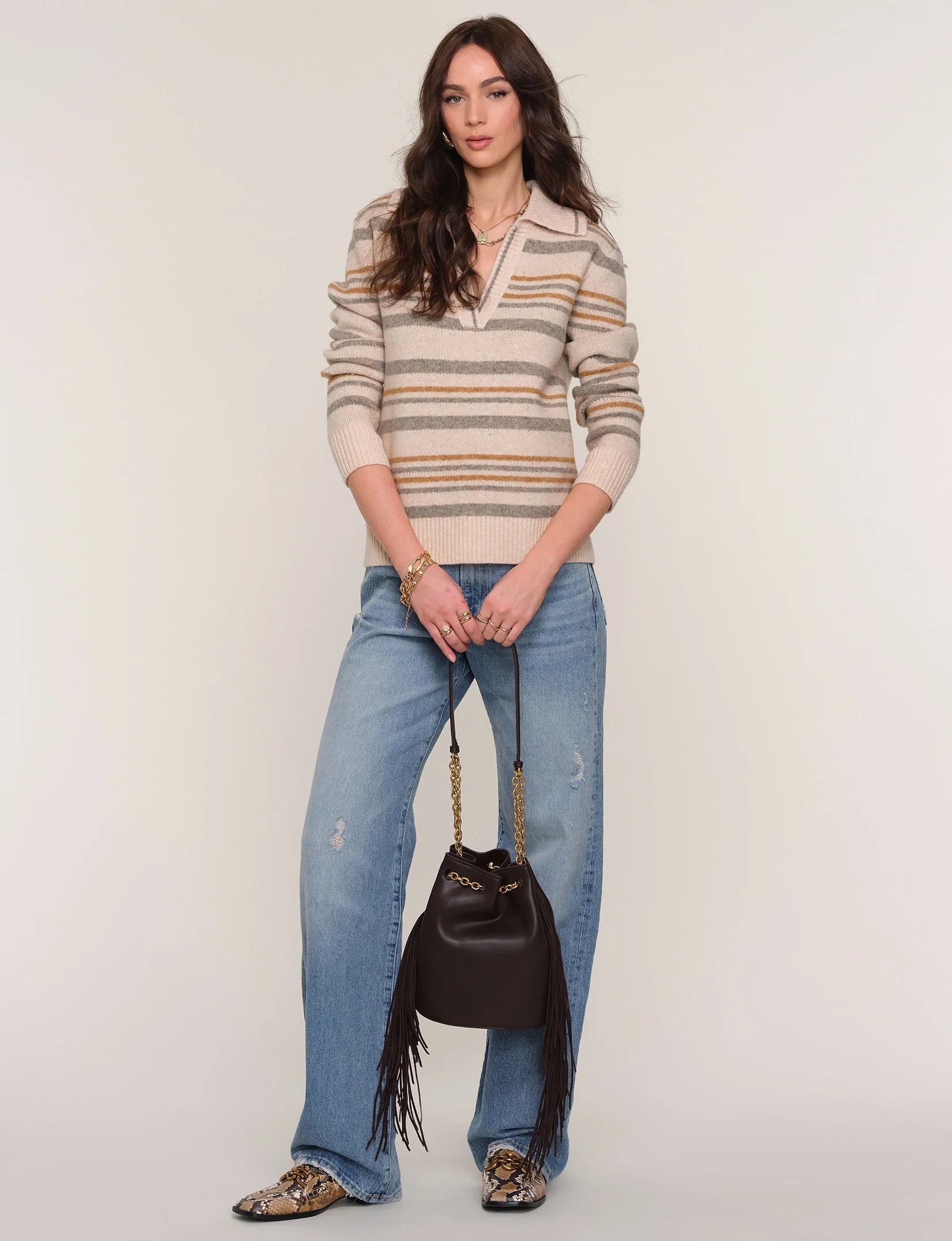 The Pesha Sweater is a relaxed fit knit made from a super soft, melange knit. It has a cool vintage, polo fit. Pair it with your favorite denim for an effortlessly cool look.