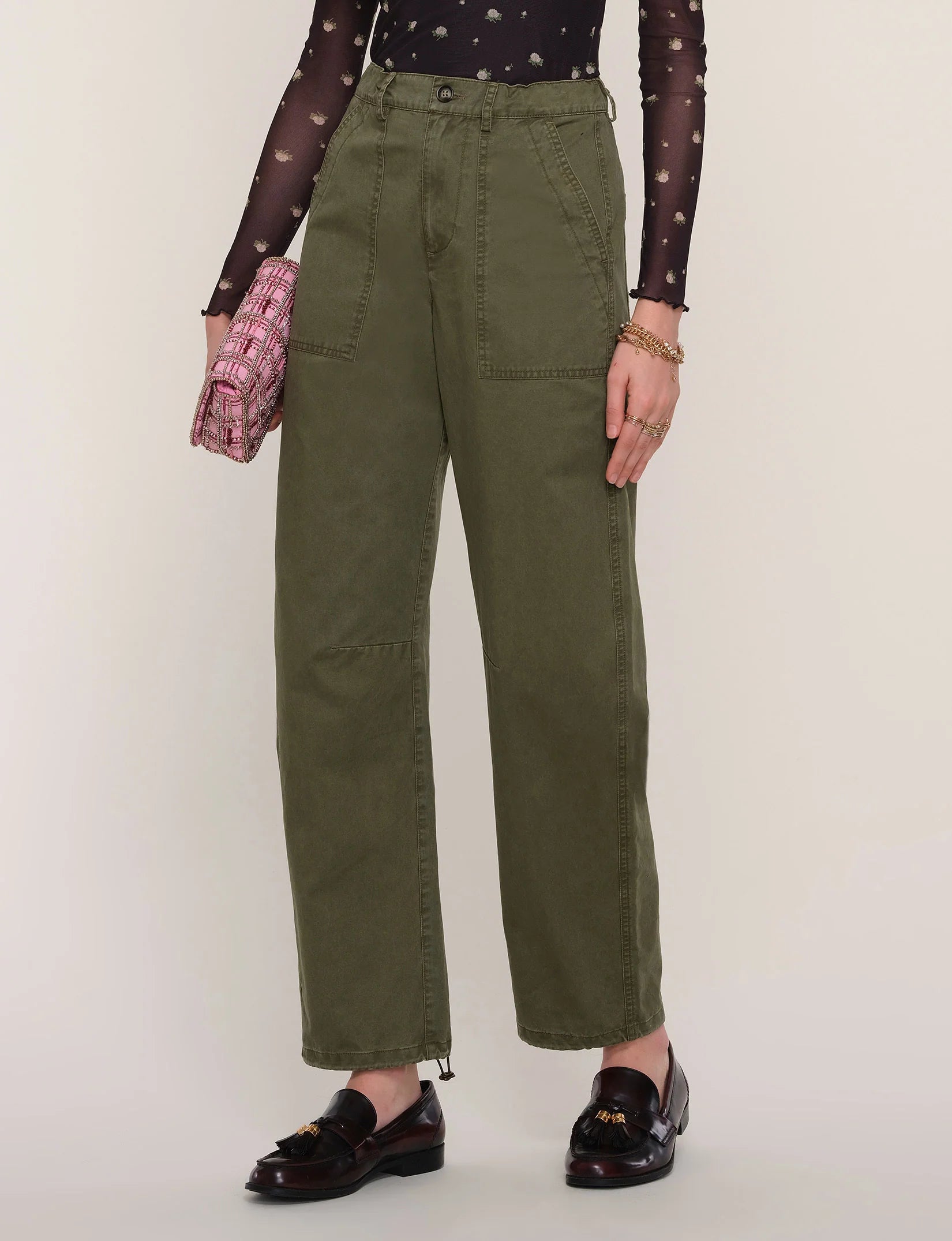 The Kaia pant is an elevated, twill basic. It has a high waist, relaxed fit and straight leg. We love it paired with a feminine top & loafers.