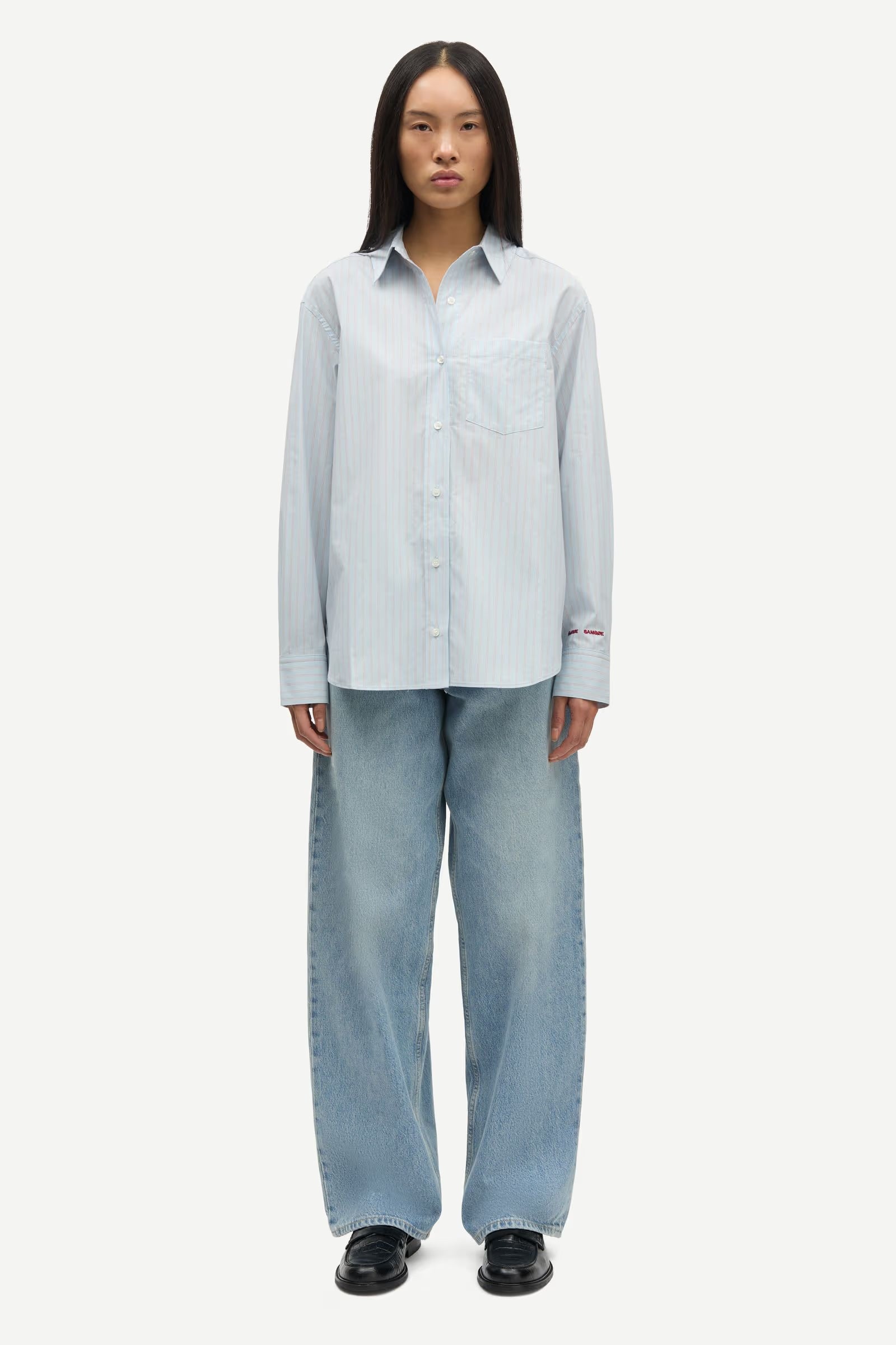 Long-sleeved shirt with a loose fit and dropped shoulders. Button closure on the front and buttoned cuffs. Single patch pocket on the chest. Neck yoke seam with pleat. Main material made from 100% organic cotton.Content: 100% Organic Cotton