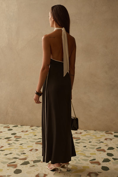 The Savannah Dress is a play on a classic slip dress with more body. Featuring contrast panel lines and beautiful halter neck, this sophisticated piece with its floaty silhouette, is perfect for those that like a relaxed fit dress that they can feel comfortable yet stylish in. Pair yours with our Sirolo Bag.Content: 100% Viscose